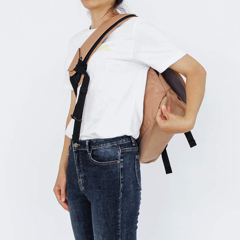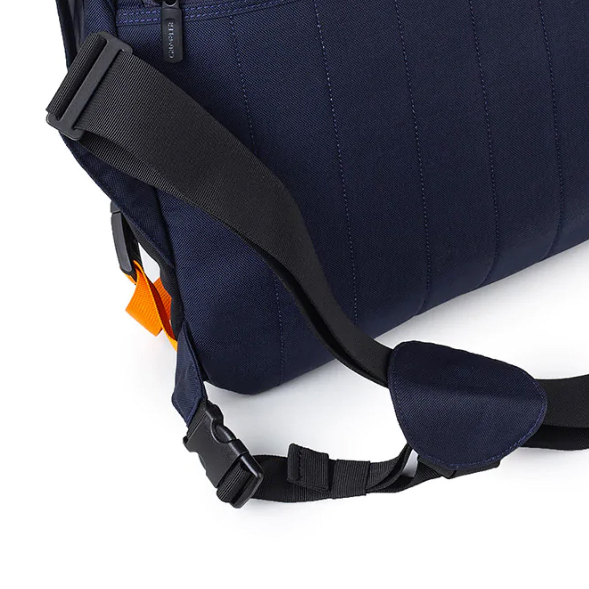 Incorporated as loops on both sides, it holds the excess webbing and prevents the shoulder strap from sticking out from the bag and getting caught on unwelcome obstacles.