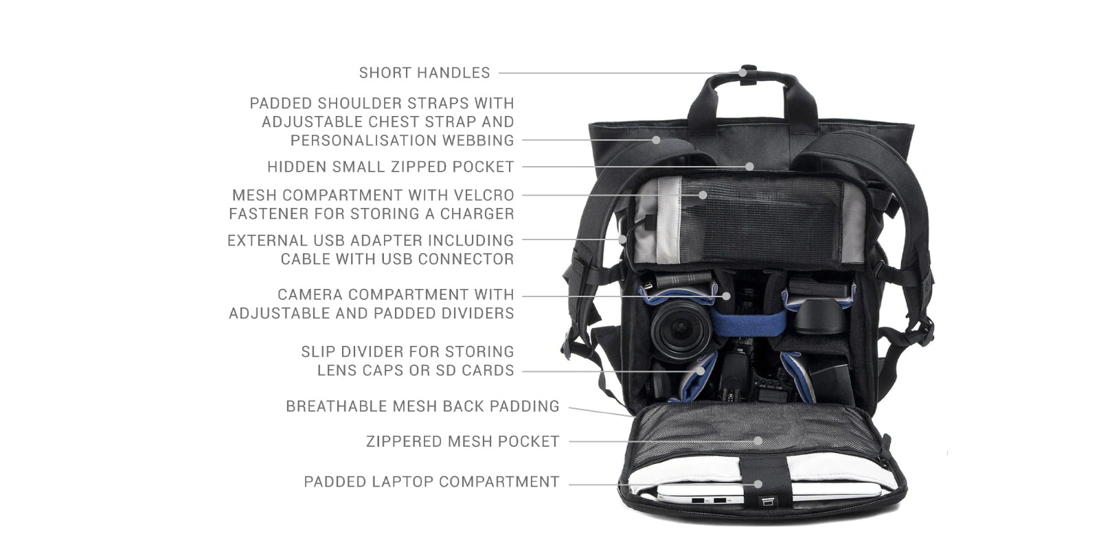- Camera compartment: 30.0 x 23.0 x 15.0 cm